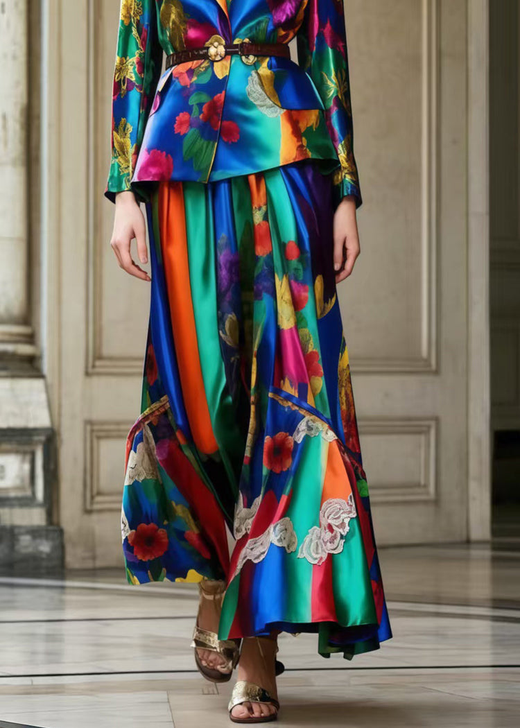 Original Design Tunic Print Silk Two Piece Set Women Clothing