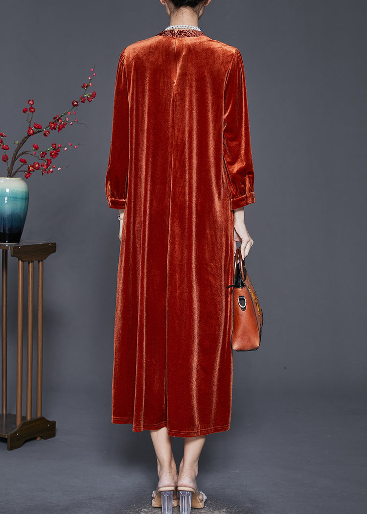 Plus Size Caramel Oversized Patchwork Silk Velvet Ankle Dress Spring