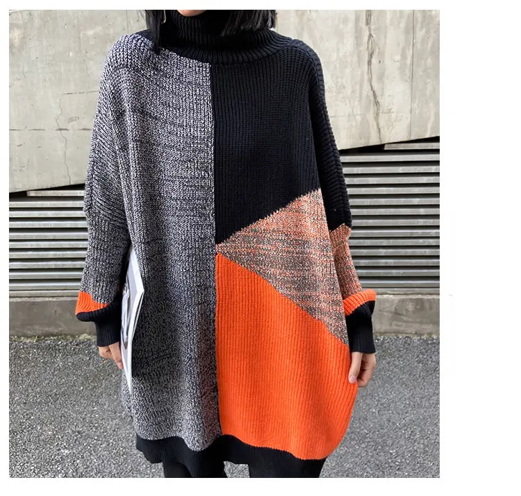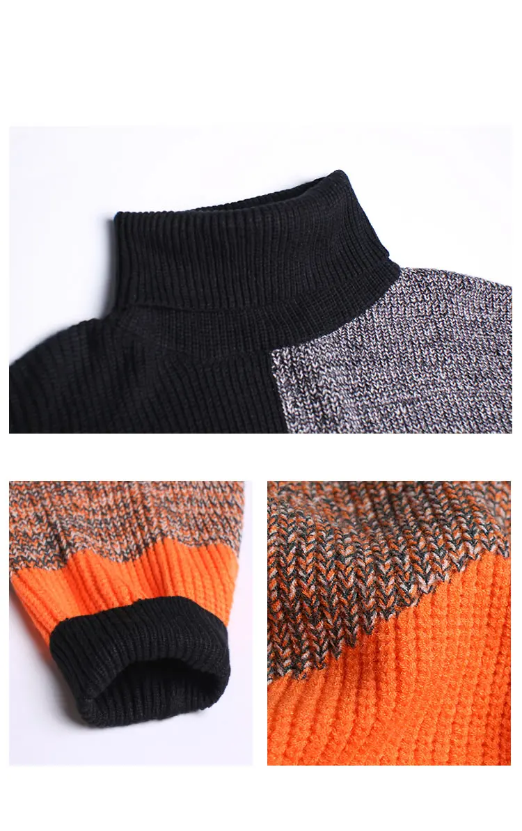 Turtleneck Pullover Winter New Splicing Contrast Color Pattern Loose Fashion - Omychic