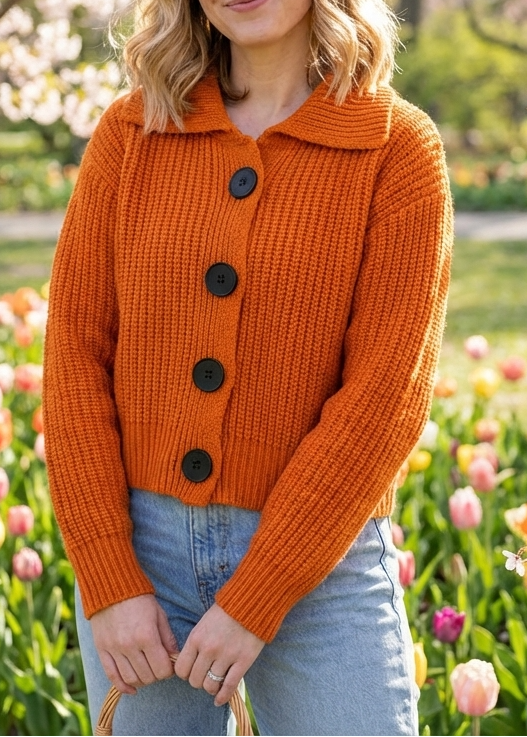 Modern Orange Peter Pan Collar Button Down Knit Cardigan