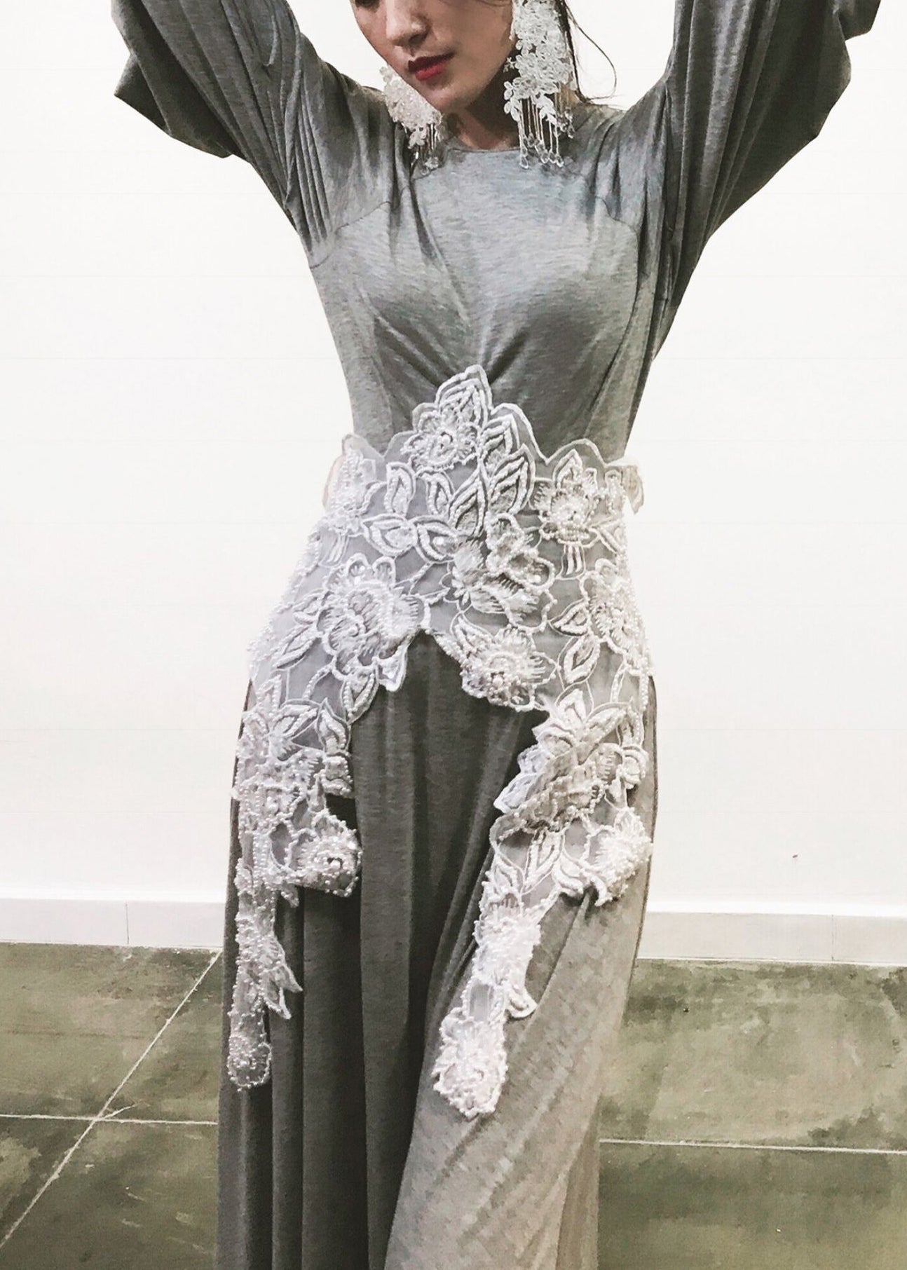 White Patchwork Tulle Long Sweater Oversized Natural Pearl Fall
