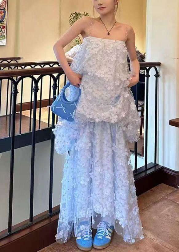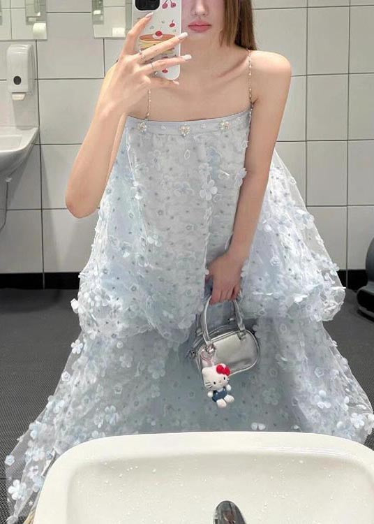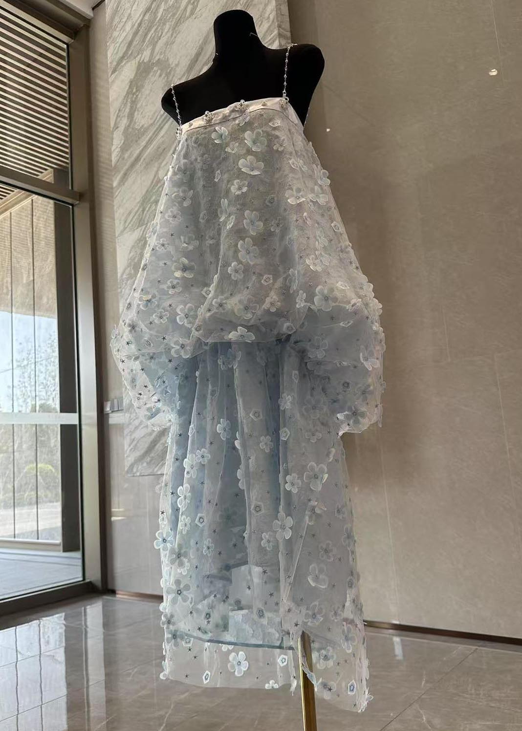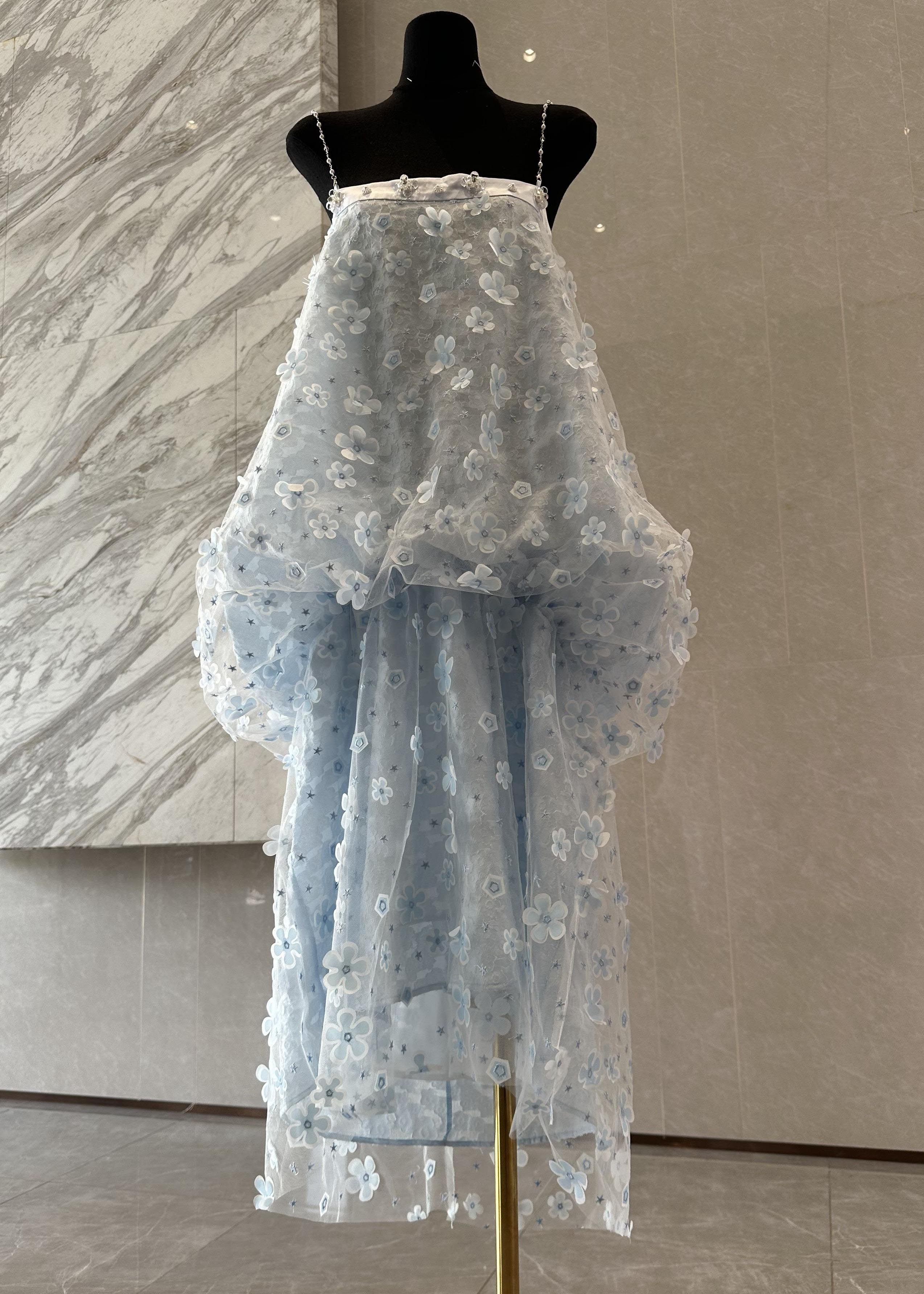 Beautiful Light Blue Floral Decorated Tulle Party Dress Summer