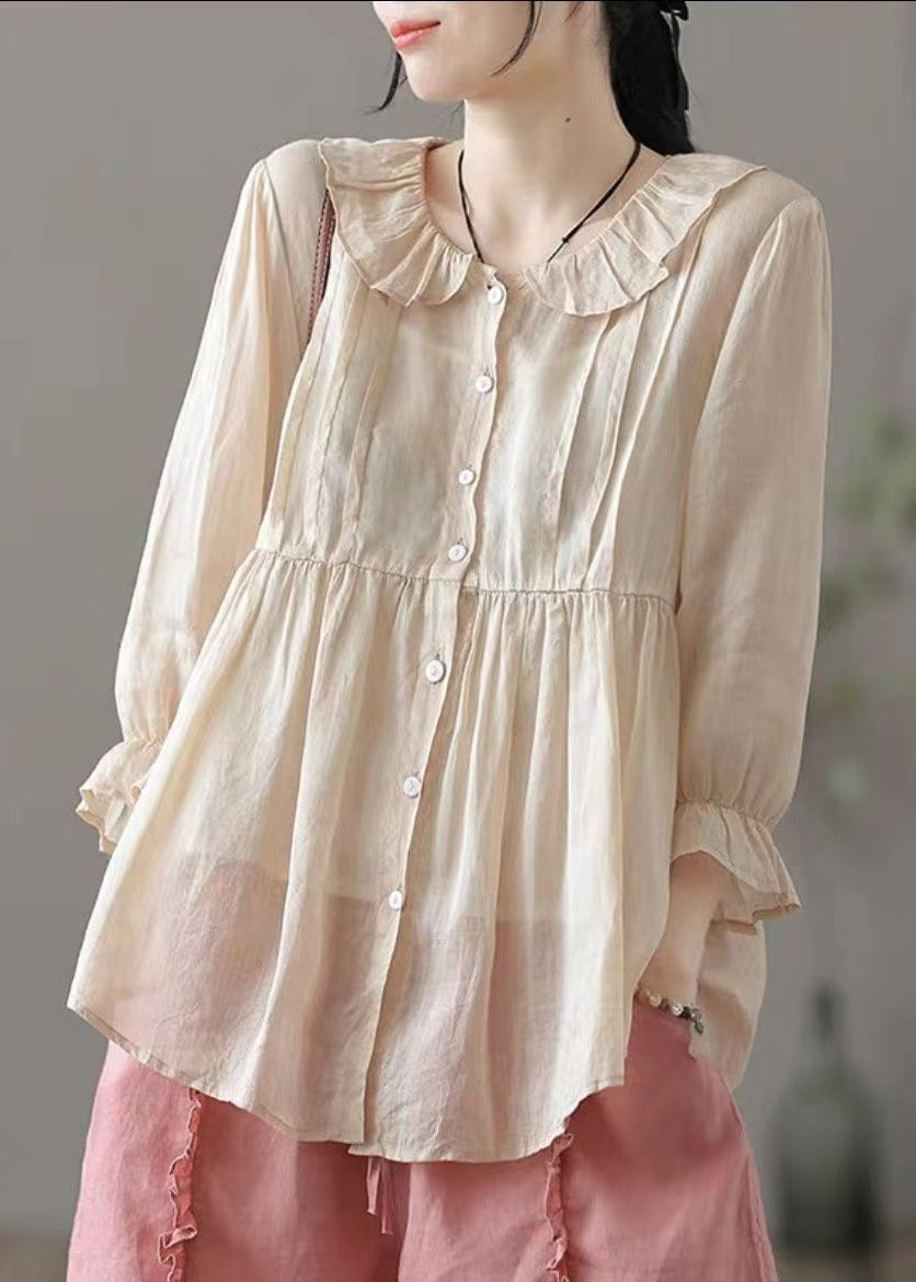 Beautiful Champagne Color Peter Pan Collar Button Cotton Shirt Fall
