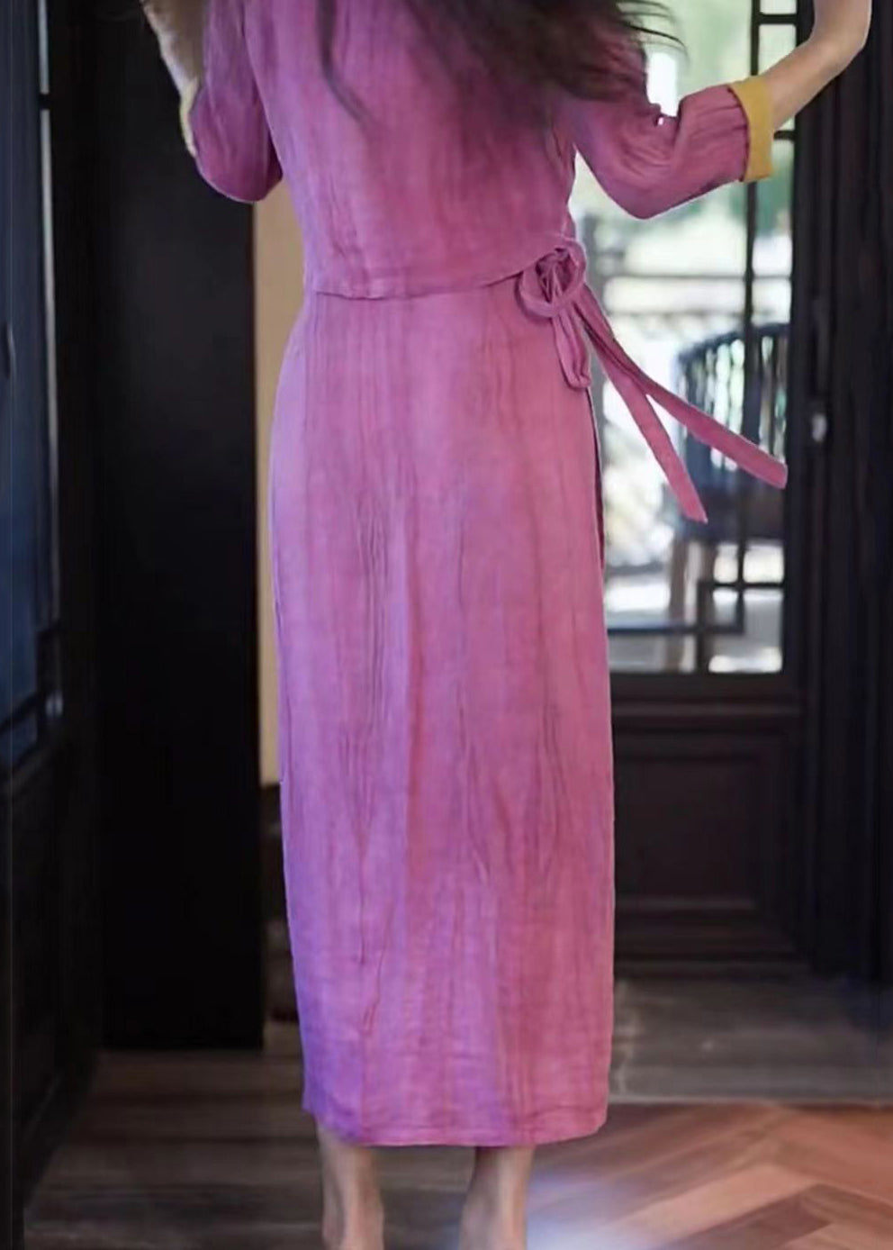 New Retro Purple Stand Collar Lace Up Patchwork Cotton Two Piece Suit Set Fall