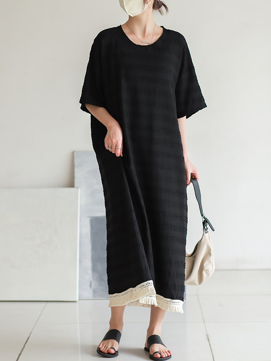 Vintage Stripe Jacquard Tassel Solid Loose Dress