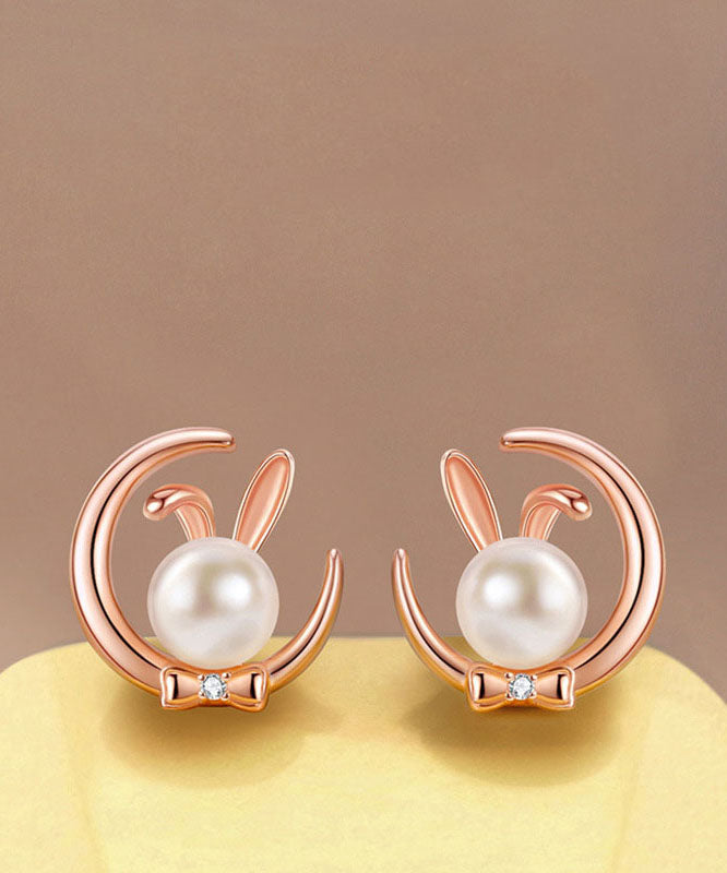 Chic Gold Cute Rabbit Pearl S925 Silver Stud Earrings