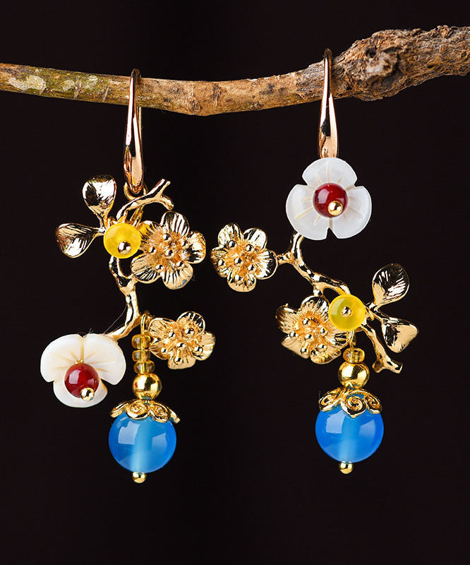 DIY Blue Agate Plum Blossom Branch 14K Gold Stud Earrings