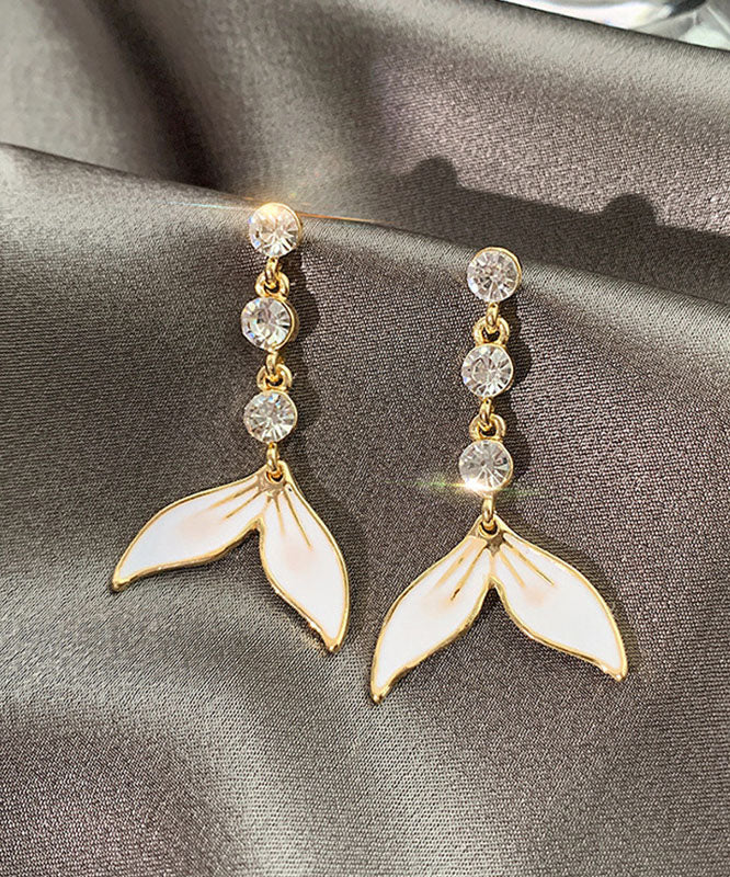 Style Gold Mermaid Tail Zircon Metal Tassel Drop Earrings