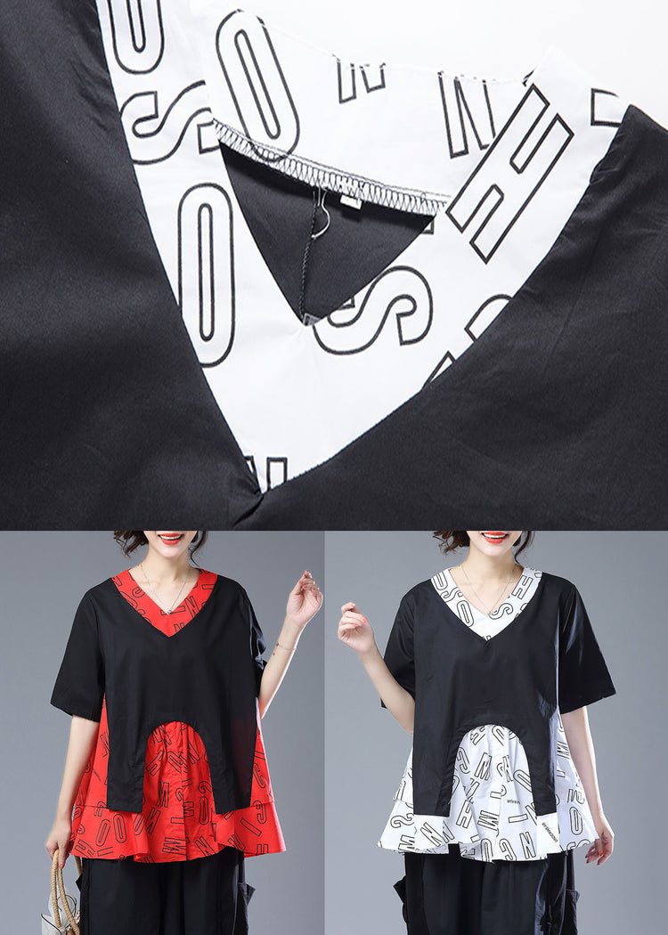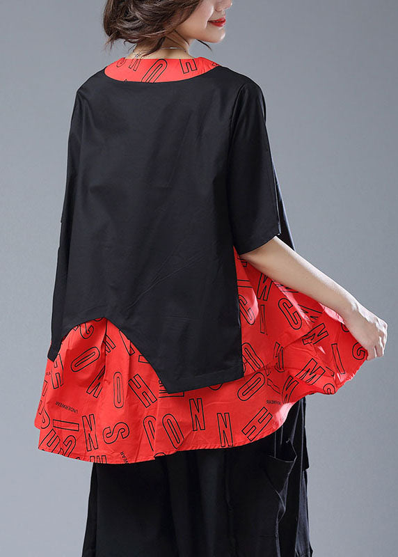 Casual Red Asymmetrical Print Patchwork Cotton T Shirt Top Summer