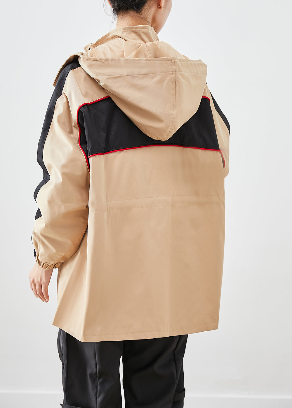 Khaki Patchwork Spandex Jacket Oversized Hooded Fall
