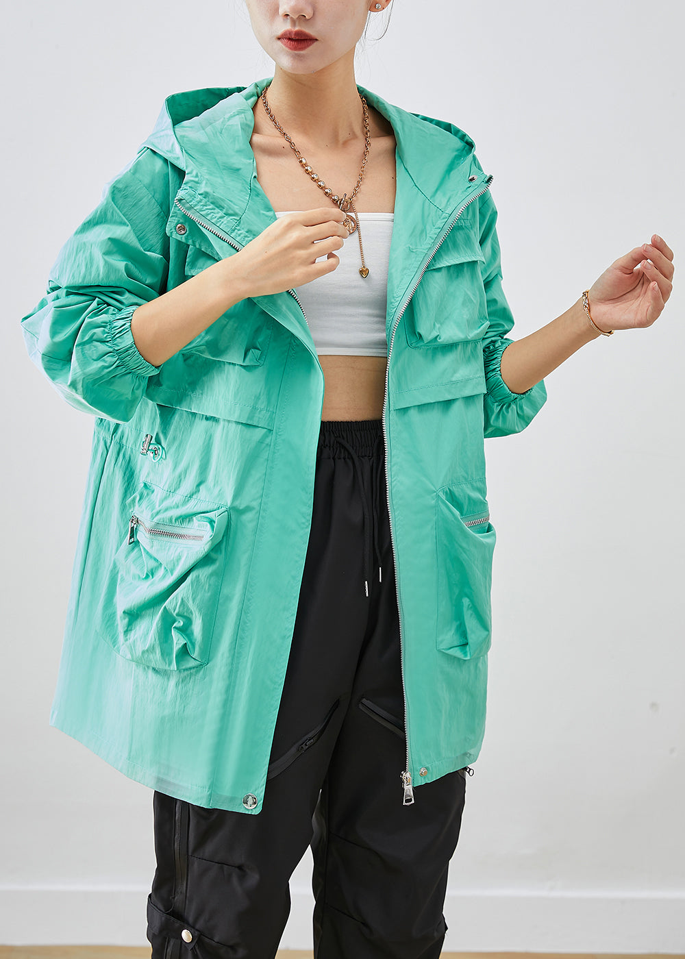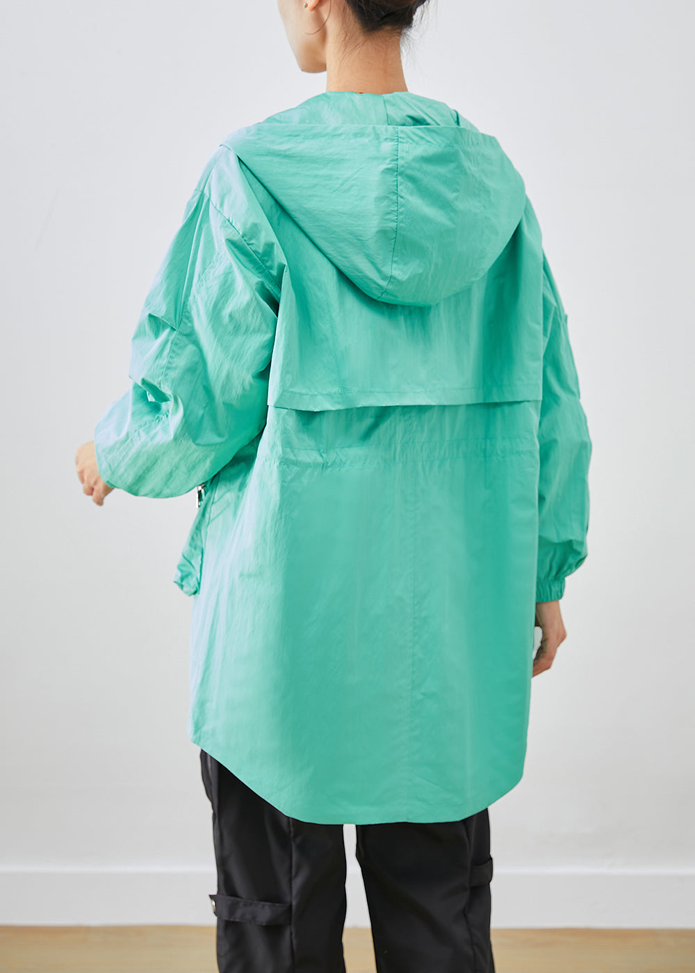 Green Patchwork Spandex Coat Outwear Hooded Pockets Fall