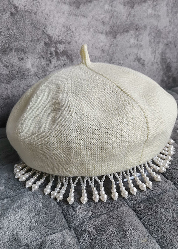 Fashion Black Nail Bead Tasseled Woolen Beret Hat