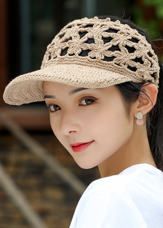 Beautiful Khaki Appliqued Hollow Out Knit Hat