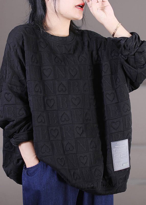 Black O-Neck Graphic Patchwork Sweatshirts Long Sleeve