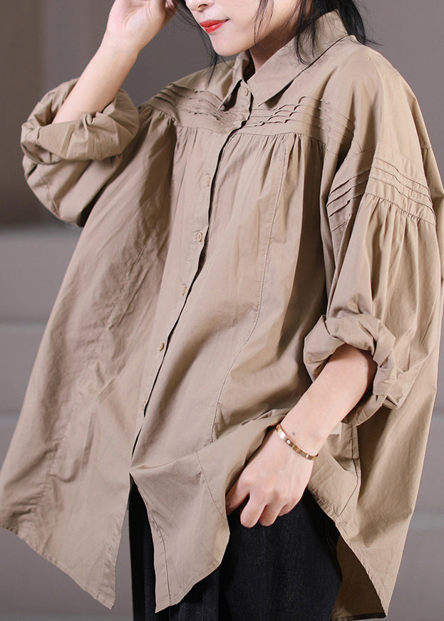 Khaki Peter Pan Collar Button Shirts Long Sleeve