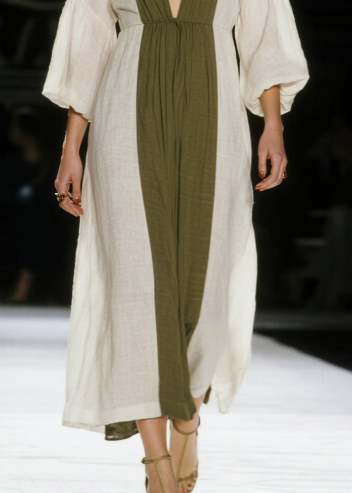 Art White V Neck Patchwork Cotton Ankle Dress Lantern Sleeve