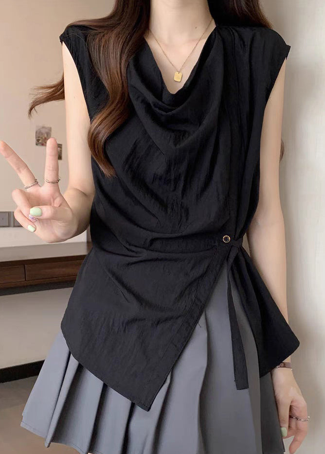 Black Patchwork Chiffon Shirts Asymmetrical Spring
