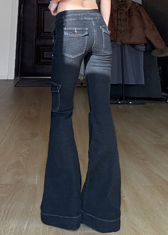 Art Black Zippered Patchwork High Waist Flared Trousers Spring