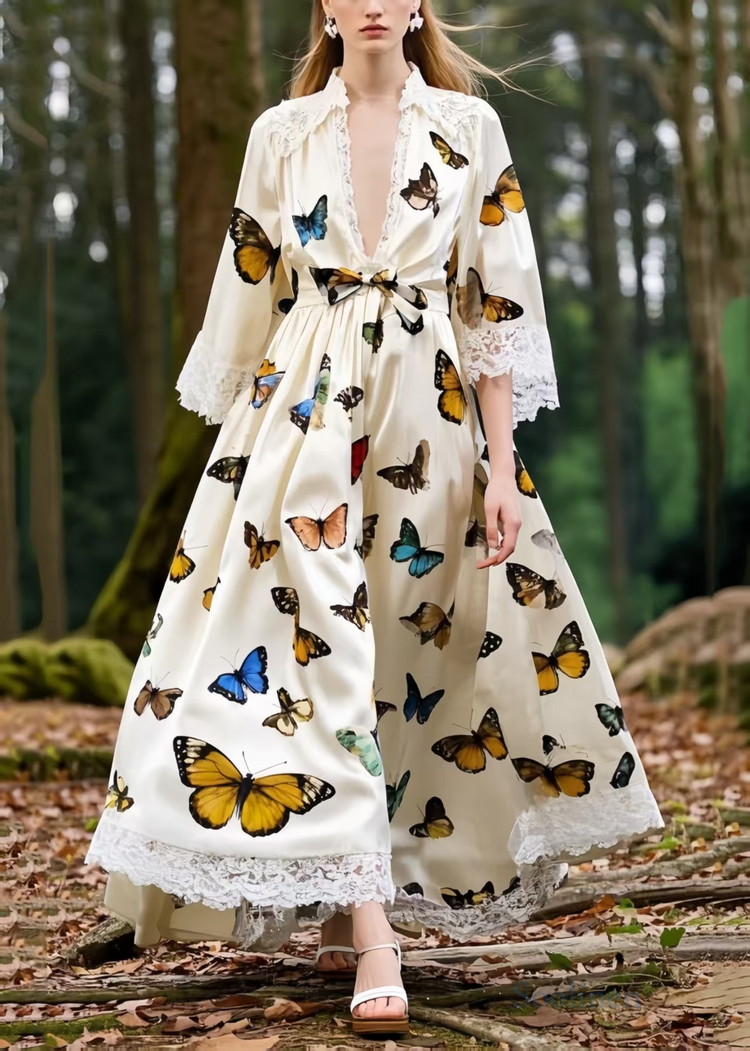 French Polychrome Butterfly Patchwork Lace Party Dress Half Sleeve