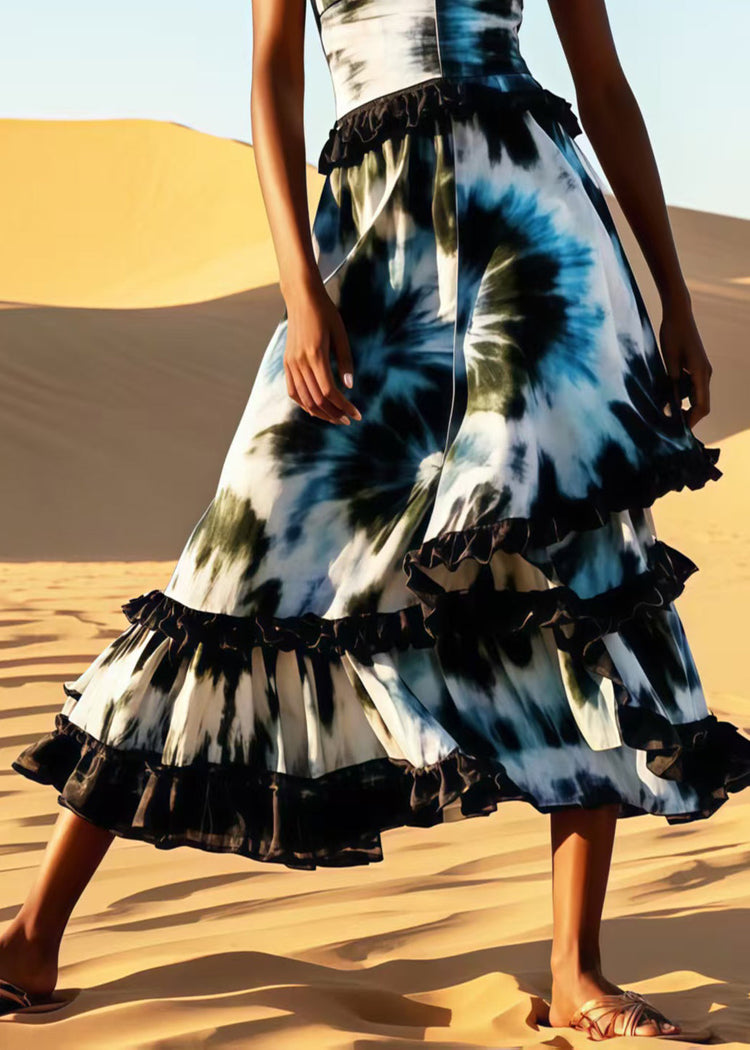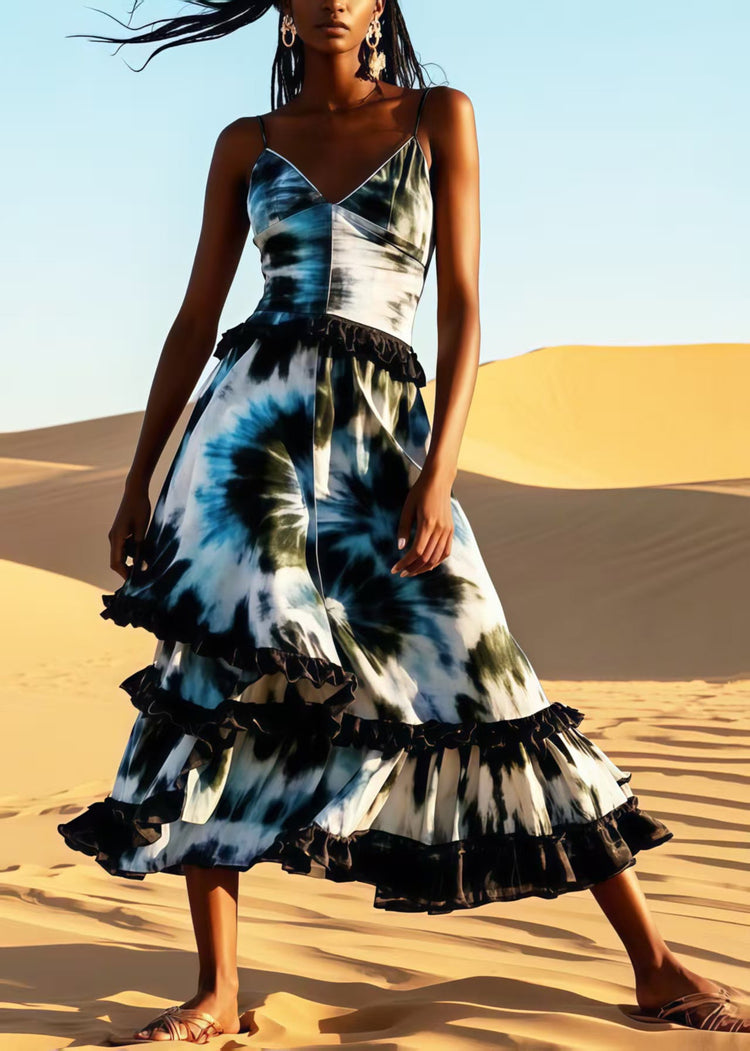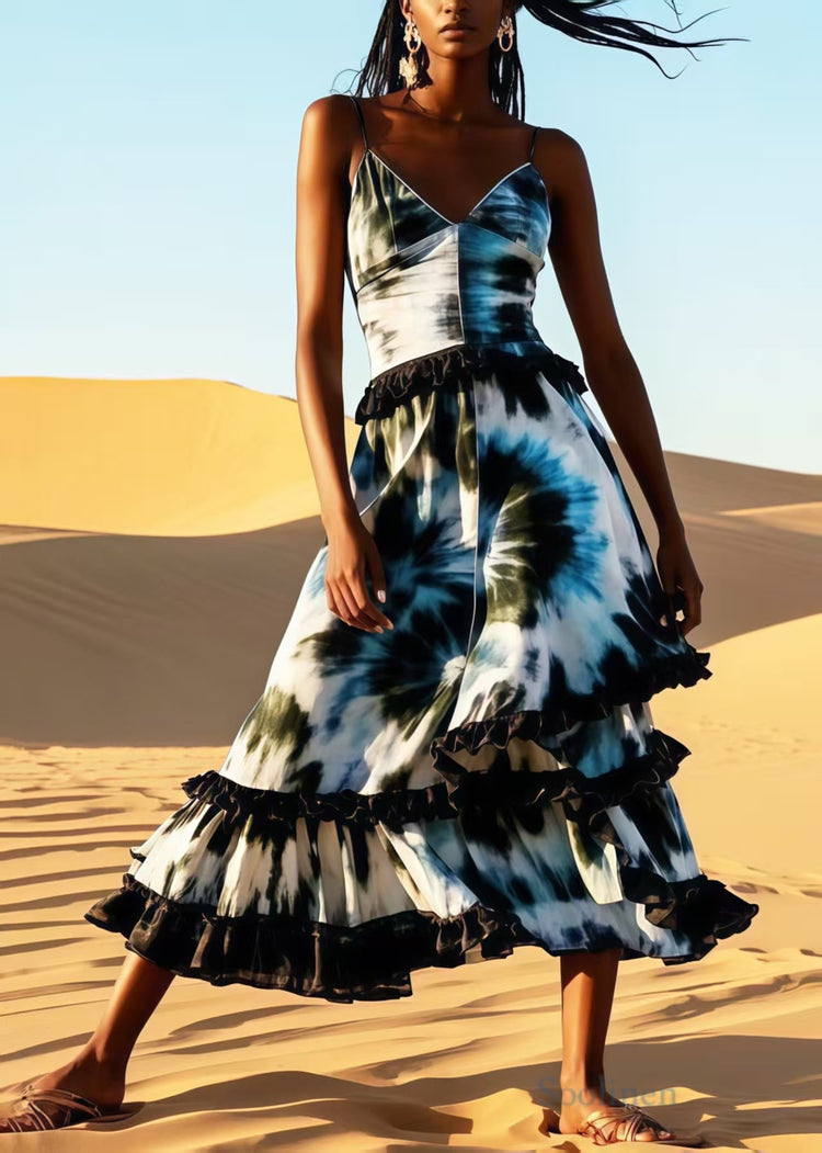 Women Ruffled Patchwork Tie Dye Cotton Cami Dress Summer