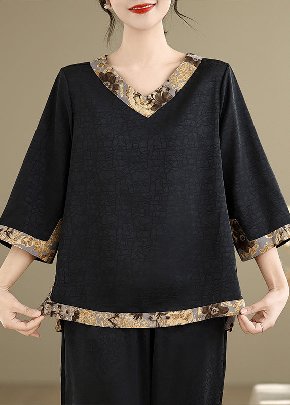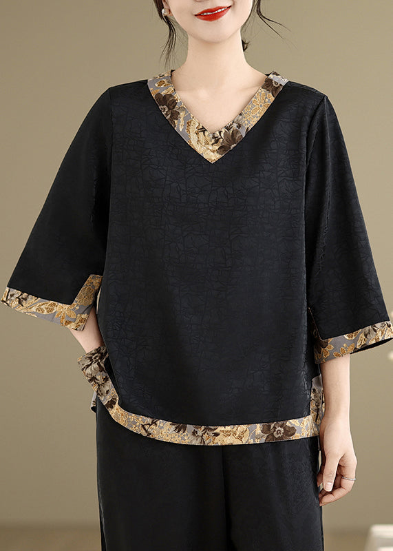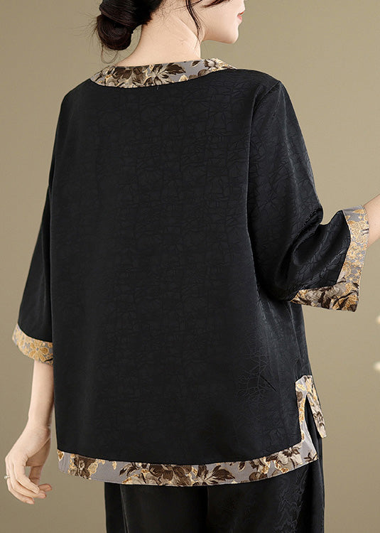 Black Patchwork Silk Tops Oversized Bracelet Sleeve