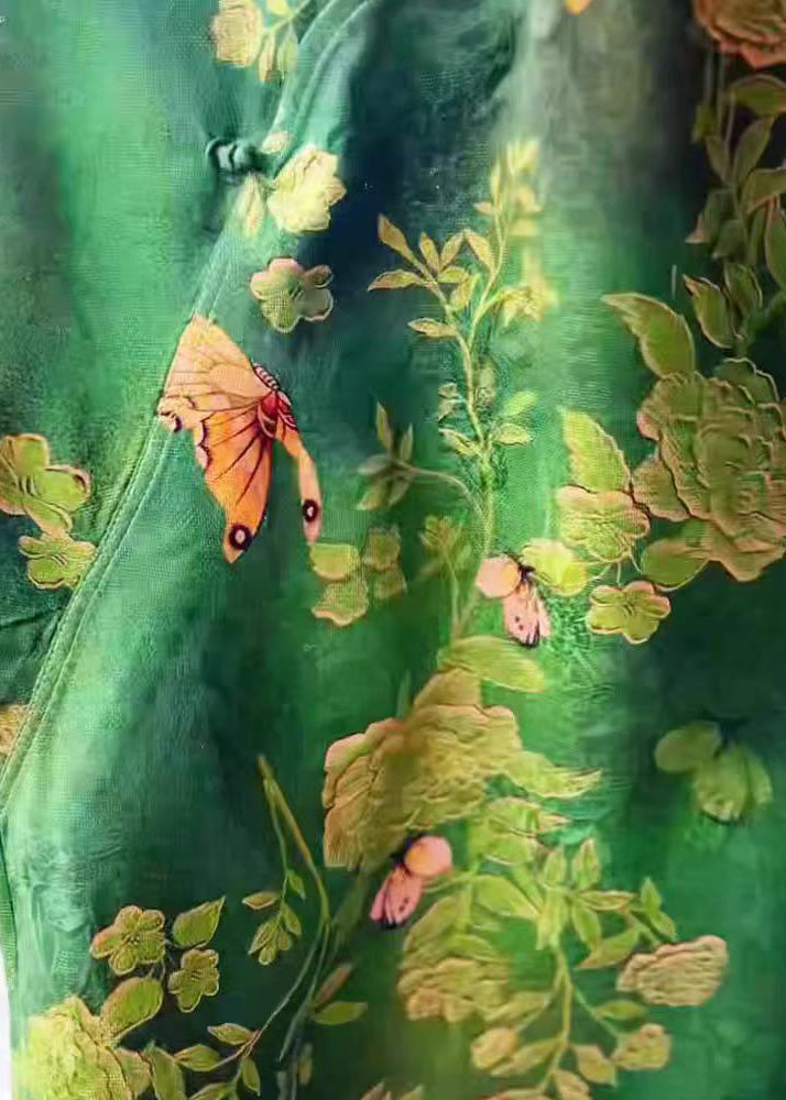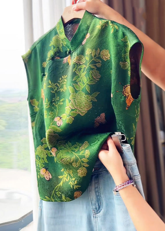 Vintage Rose Jacquard Chinese Button Silk Top Summer
