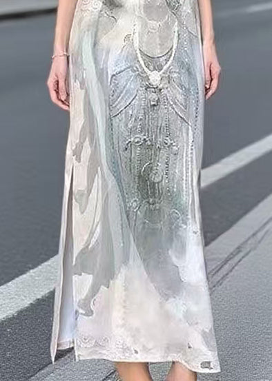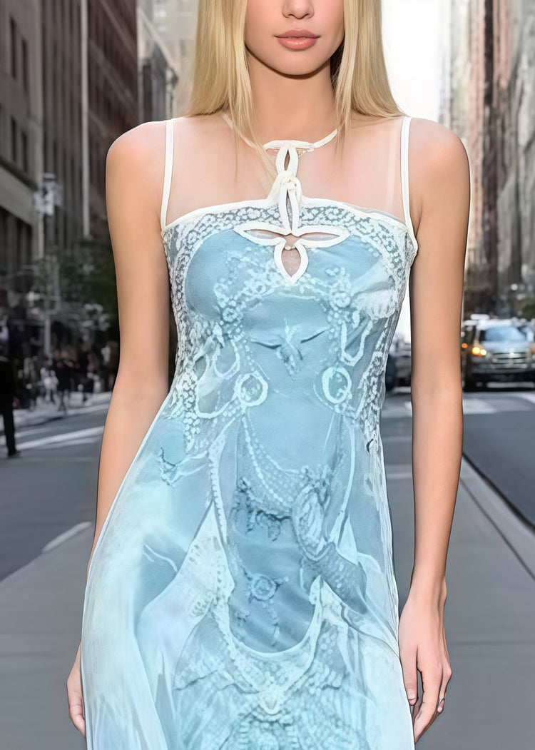 Bohemian Print Tulle Patchwork Side Open Holiday Dress Sleeveless