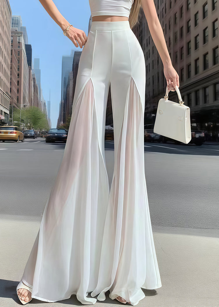 Bohemian White High Waist Patchwork Chiffon Bell-bottom Trousers Summer