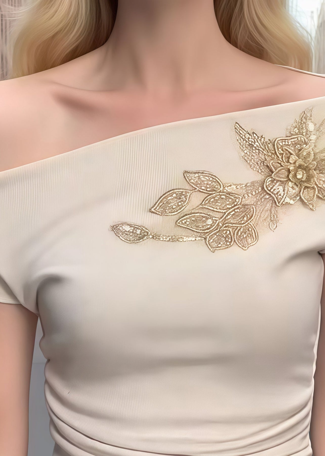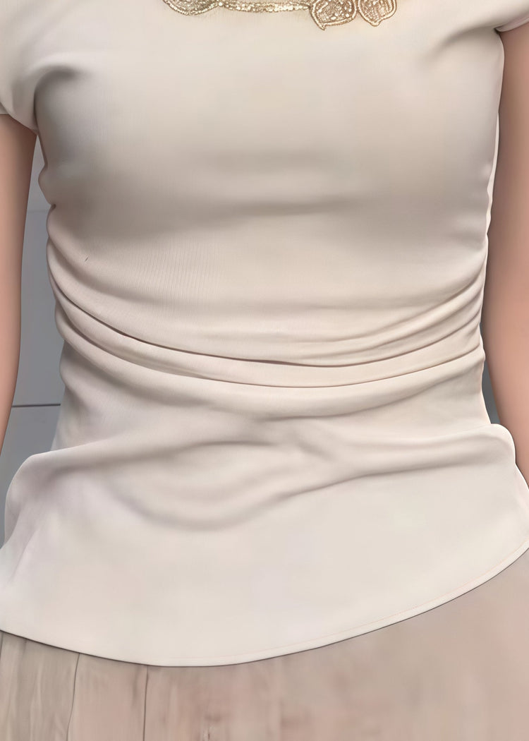 Sexy Beige Embroideried Cotton One Shoulder Tops Summer