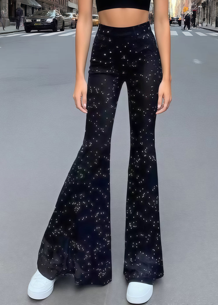 Women Black Rhinestone Mesh Tulle Flare Bottoms Summer