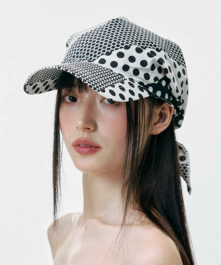 Japanese Style Black White Dot Bow Baseball Cap Hat