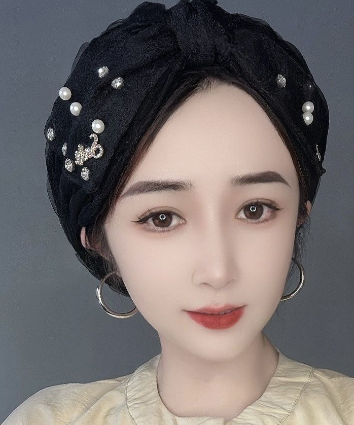 New Fashion Beige Thin Bubble Tulle Pearl Zircon Boonie Hat