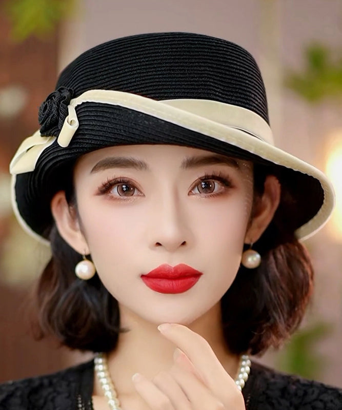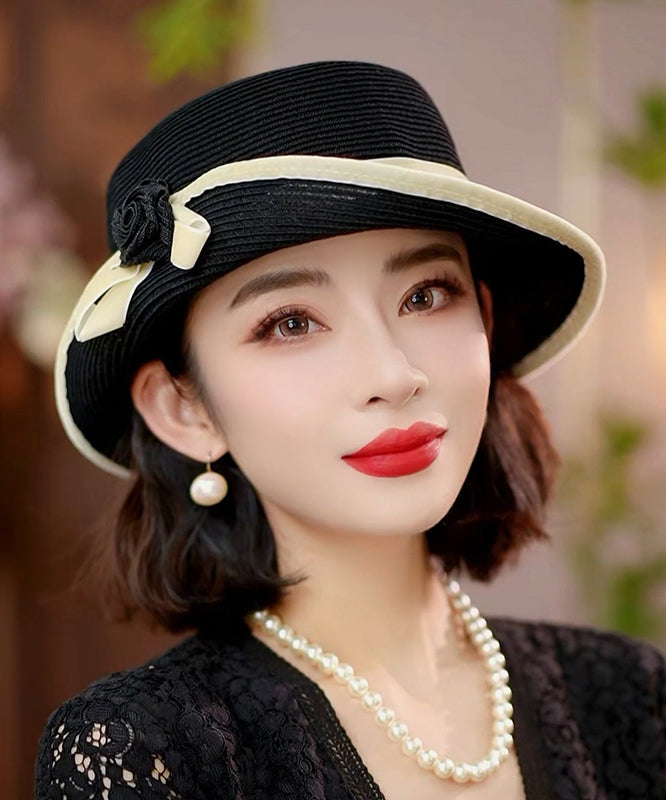 Stylish Black Floral Elegant Versatile Floppy Sun Hat