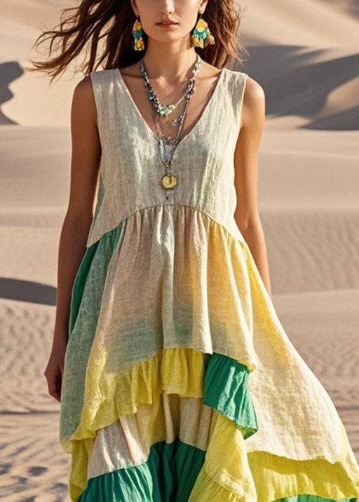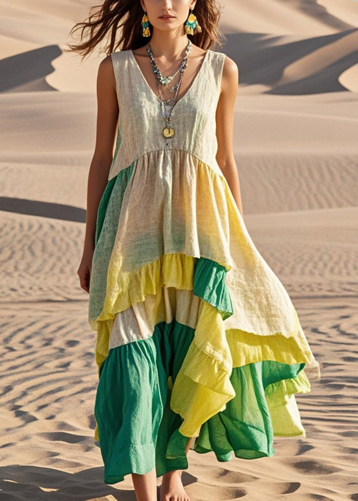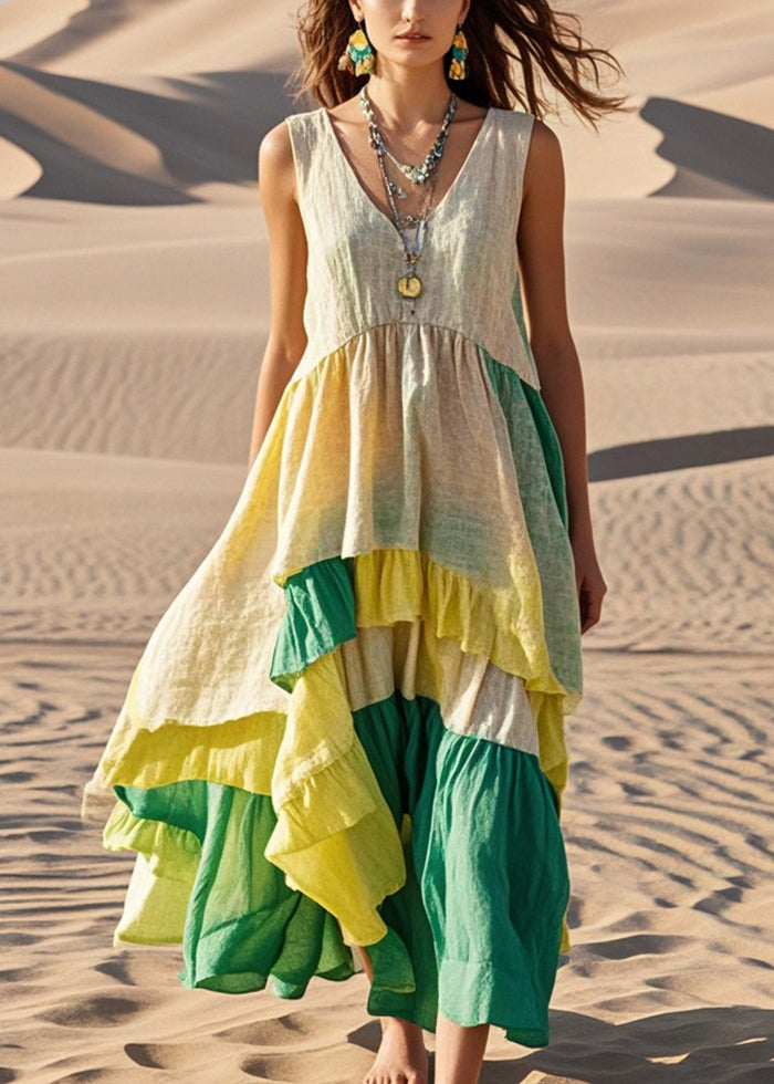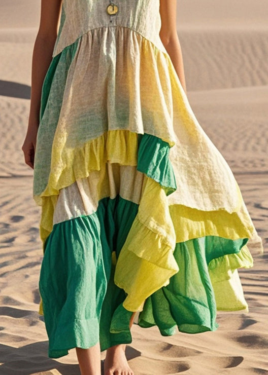 Casual Oversized Patchwork Exra Large Hem Cotton Long Dress Summer