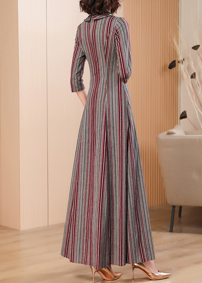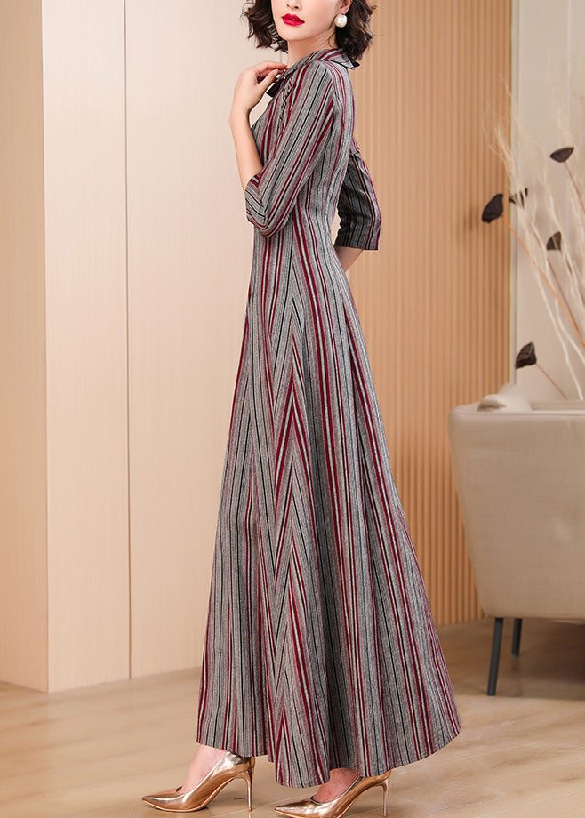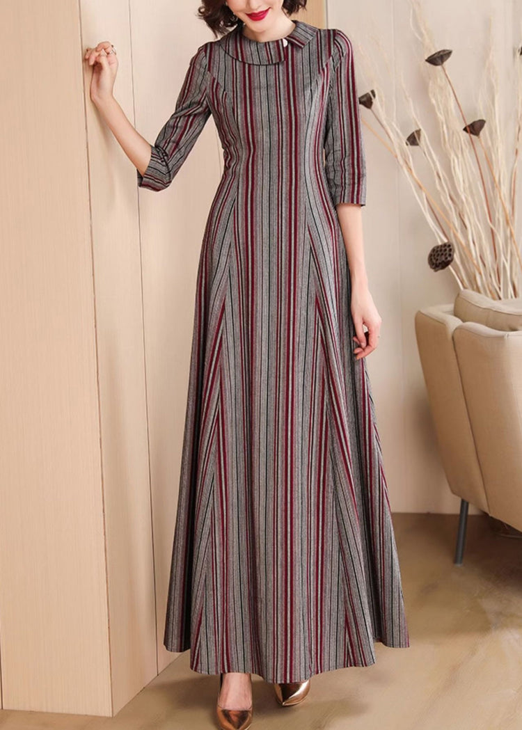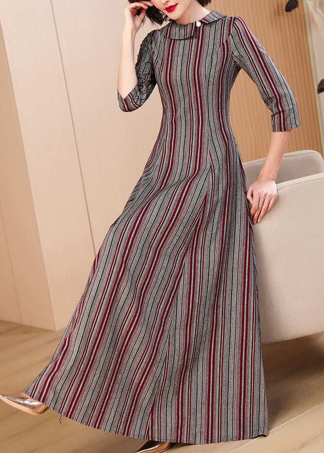 Classy Peter Pan Collar Striped Cotton Dresses Summer