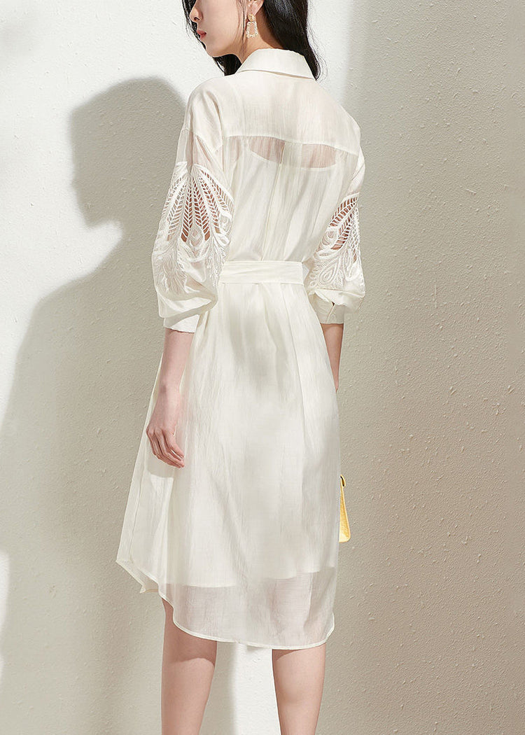 Loose Beige Hollow Out Tie Waist Shirts Dress And Spaghetti Strap Dress Silk Two Piece Set Fall