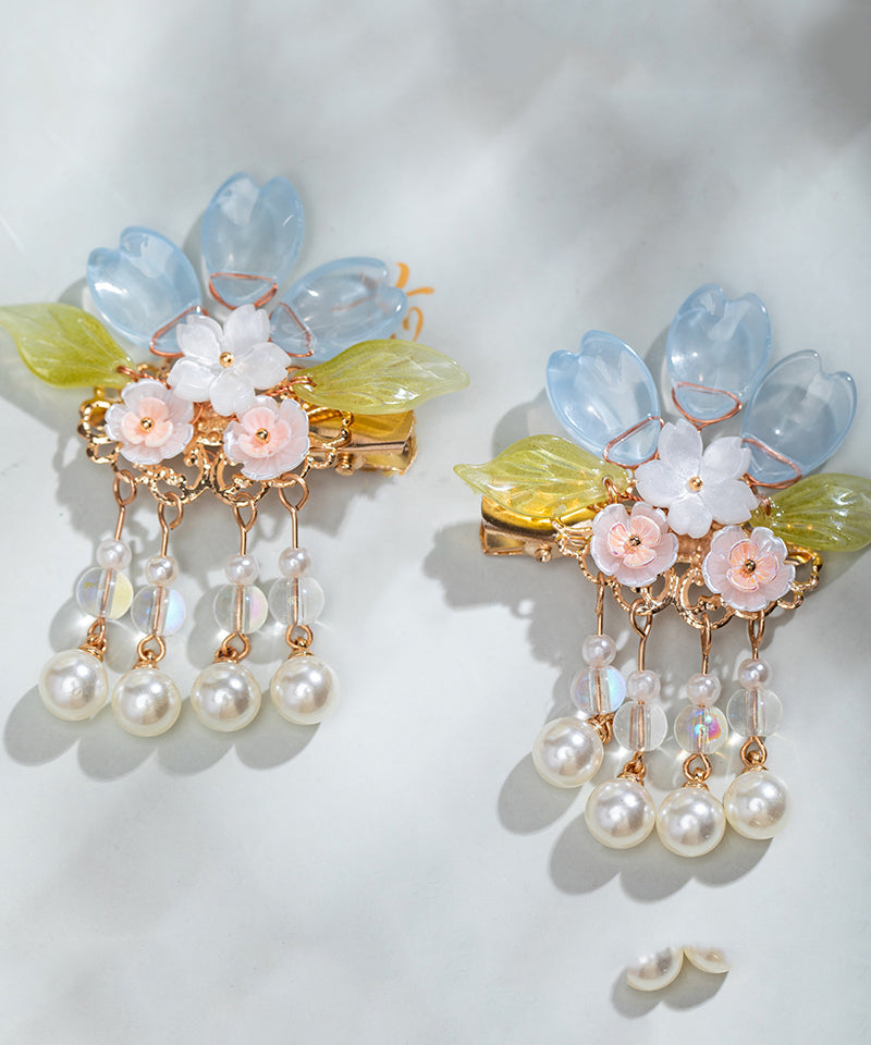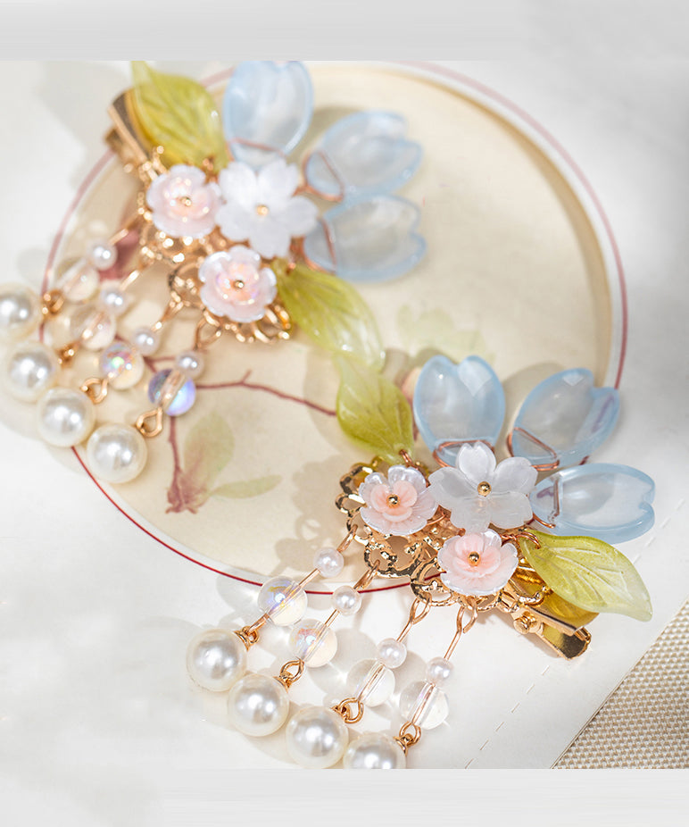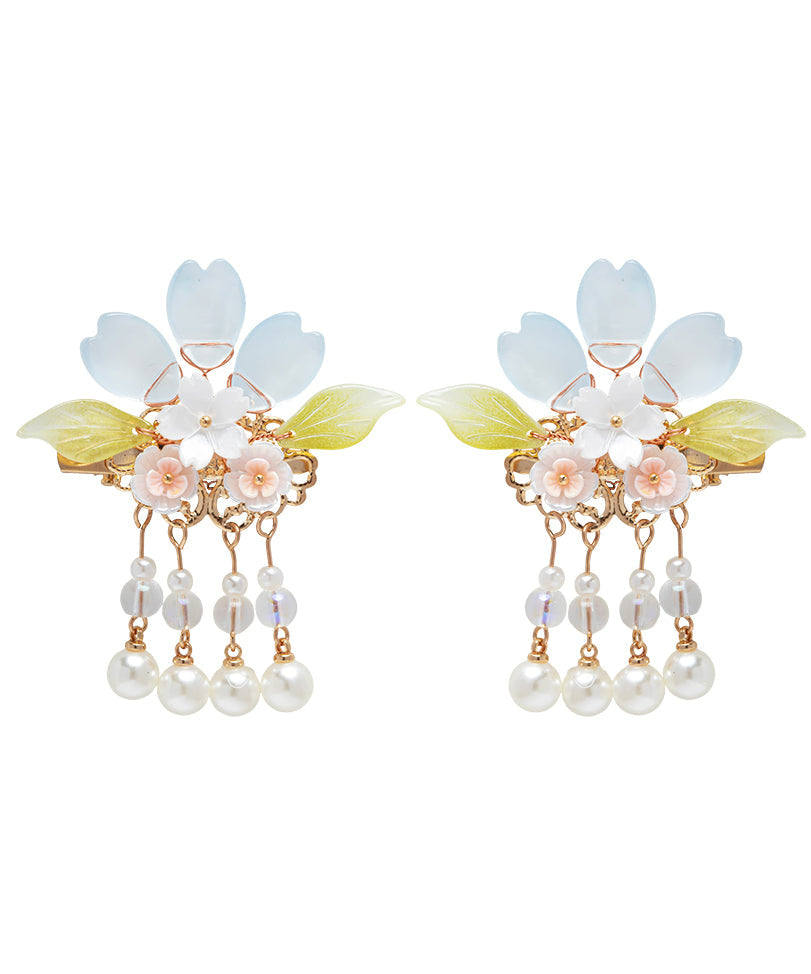 Style Multicolor Alloy Pearl Floral Tassel Kids A Pair Hairpin