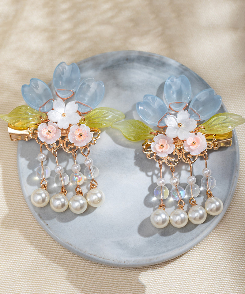 DIY Colorblock Copper Alloy Pearl Colored Glaze Floral Tassel Girls A Pair Hairpin