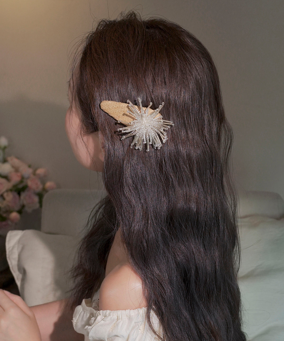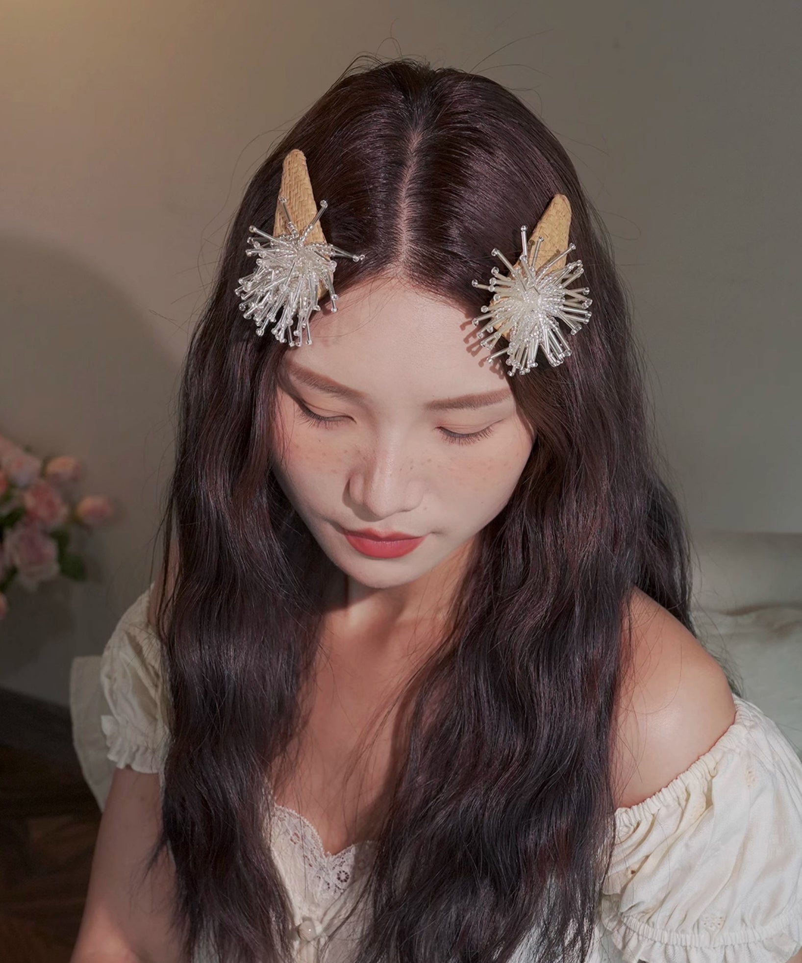 Handmade Yellow Alloy Straw Weaving Crystal Suede Fireworks A Pair Hairpin