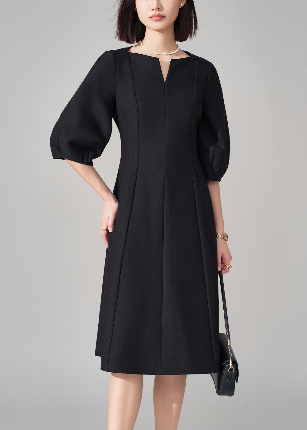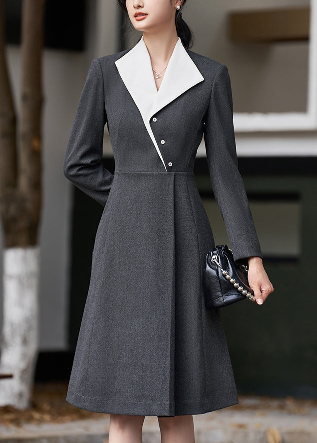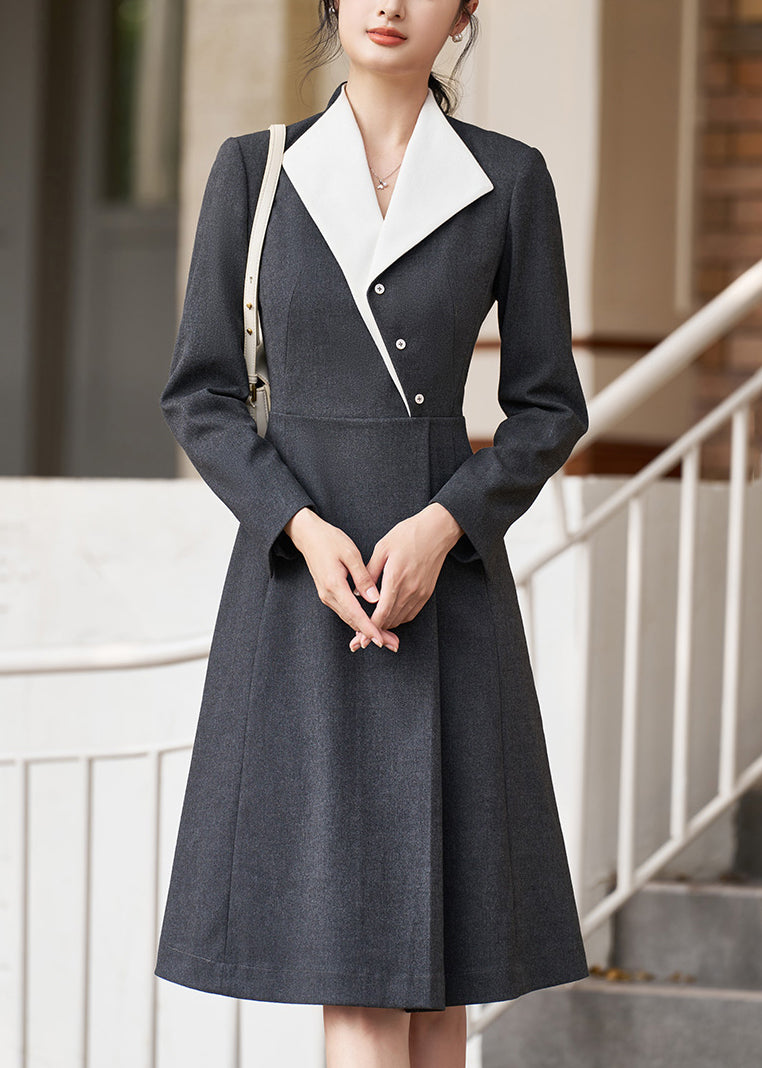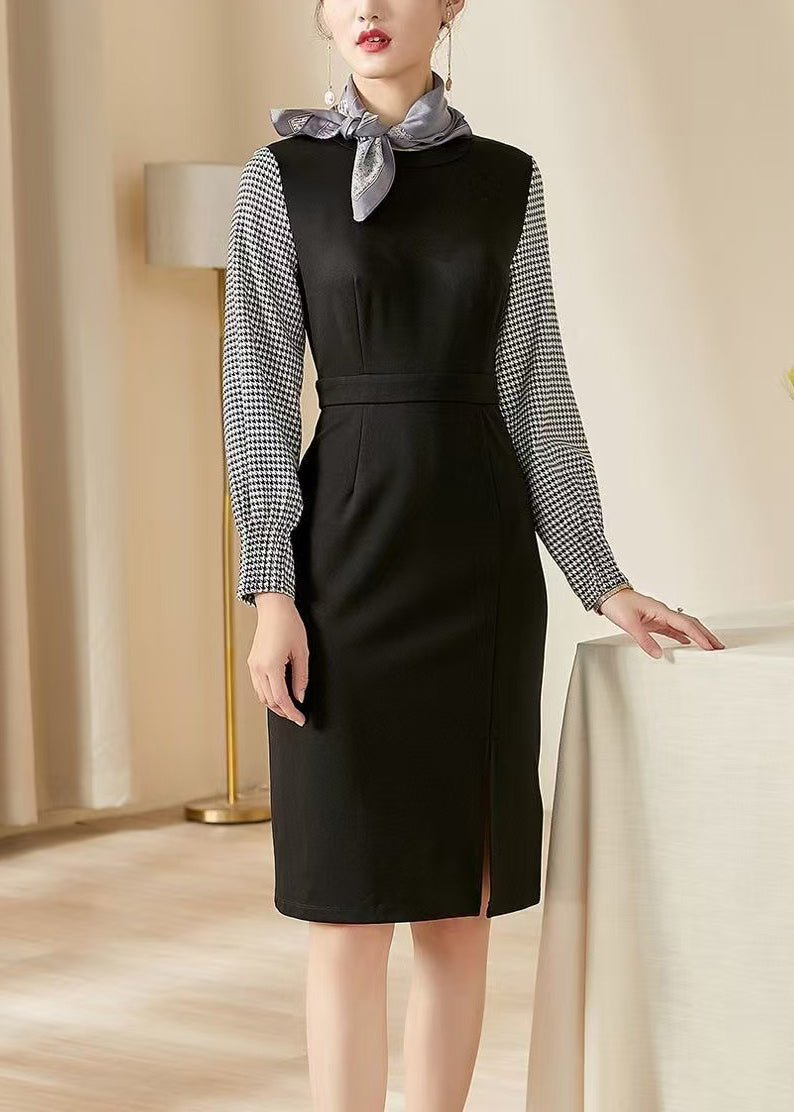 Slim Fit Black Plaid Side Open Patchwork Cotton Dresses Fall