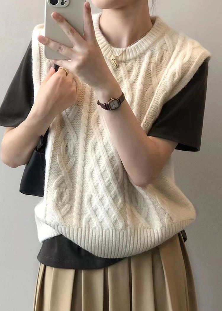Beige Patchwork Loose Knit Waistcoat Top O Neck Fall
