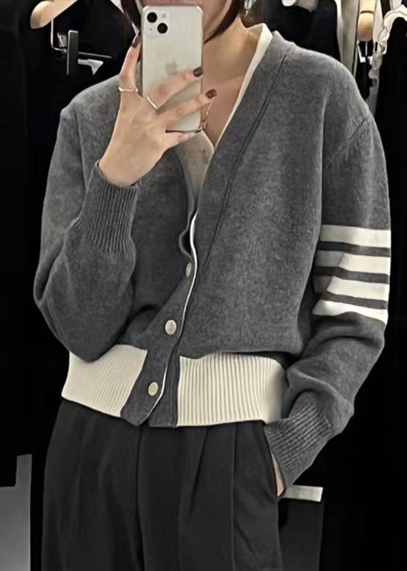 New Navy Button Patchwork False Two Pieces Cotton Knit Coats Fall
