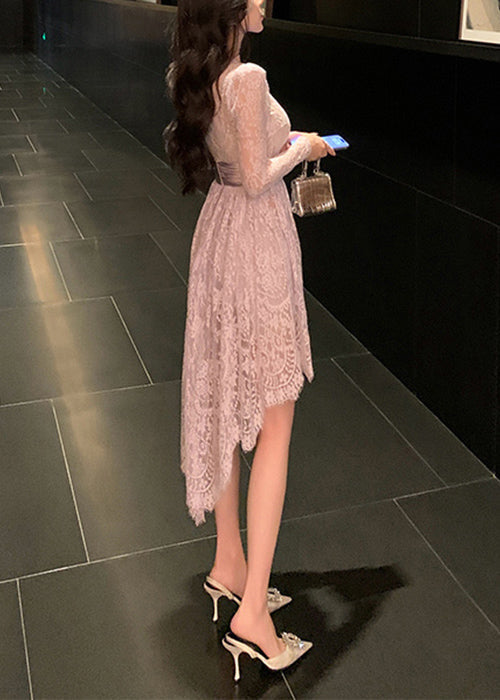 Slim Fit Purple Hollow Out Low High Design Lace Dresses Fall