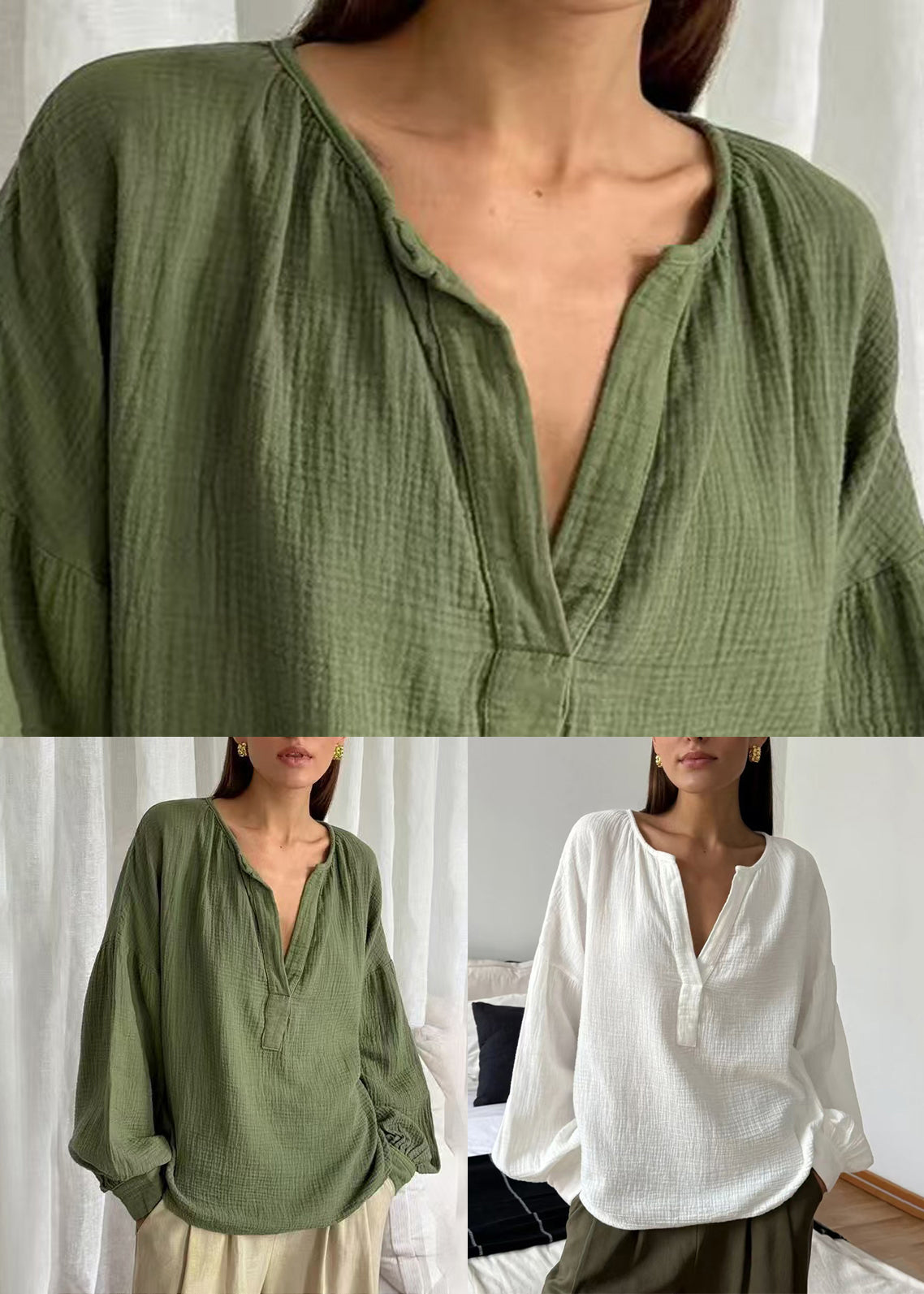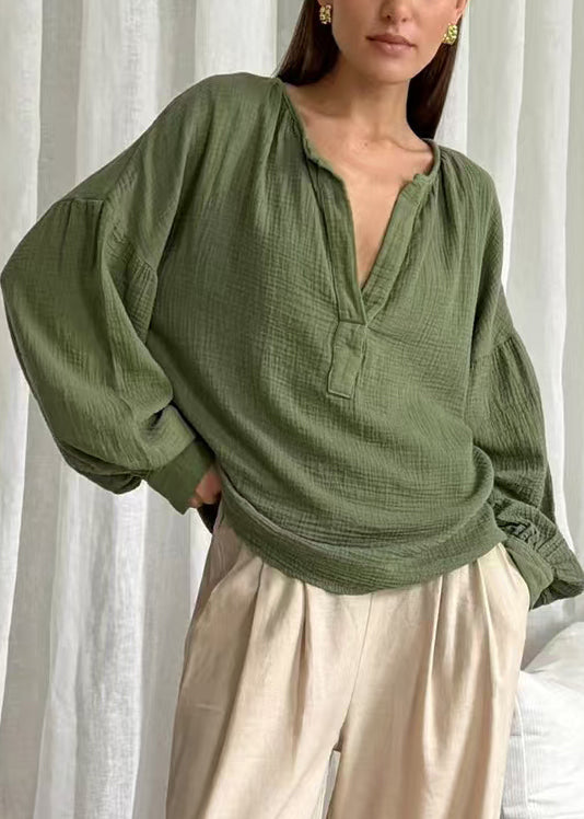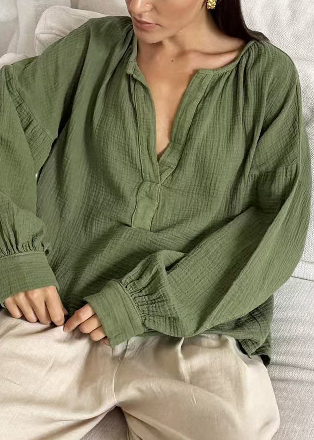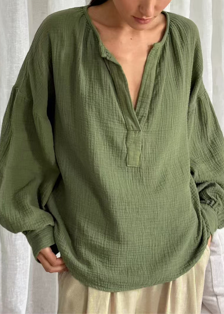 Green Solid Oversized Cotton Fall Shirt V Neck