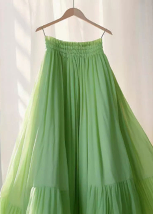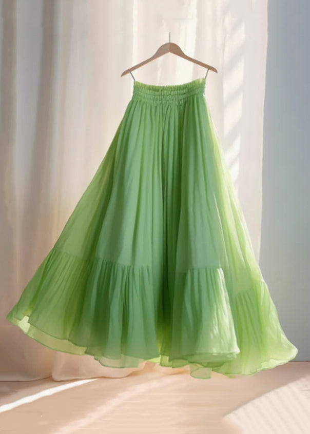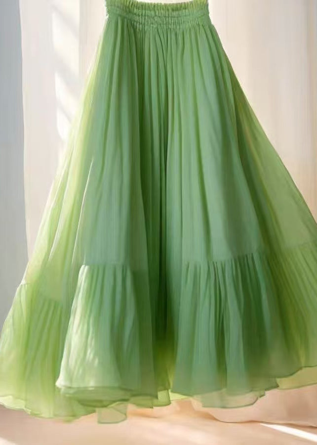 Simple Green Wrinkled Elastic Waist Chiffon Skirt Summer