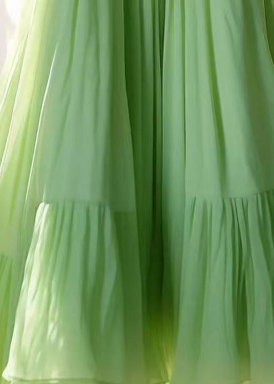 Elegant Green V Neck Wrinkled High Waist Cotton Maxi Dresses Summer