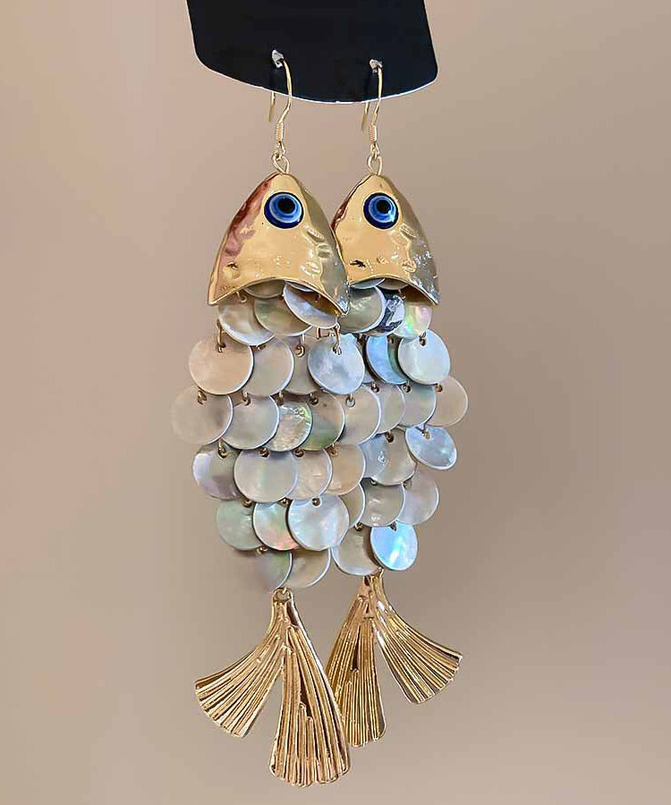 Unique Blue Alloy Shell Fish Scale Drop Earrings