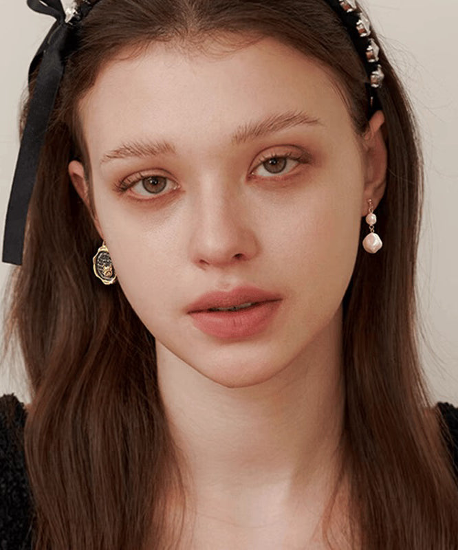Chic Sterling Silver Overgild Pearl Kitten Asymmetrical Drop Earrings