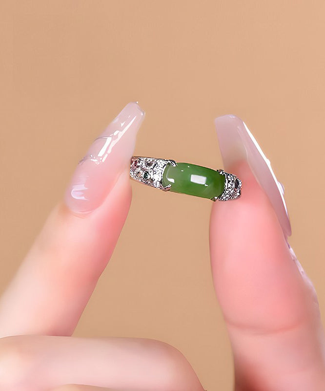Retro Mulberry Sterling Silver Jade Branch Entangle Open Rings