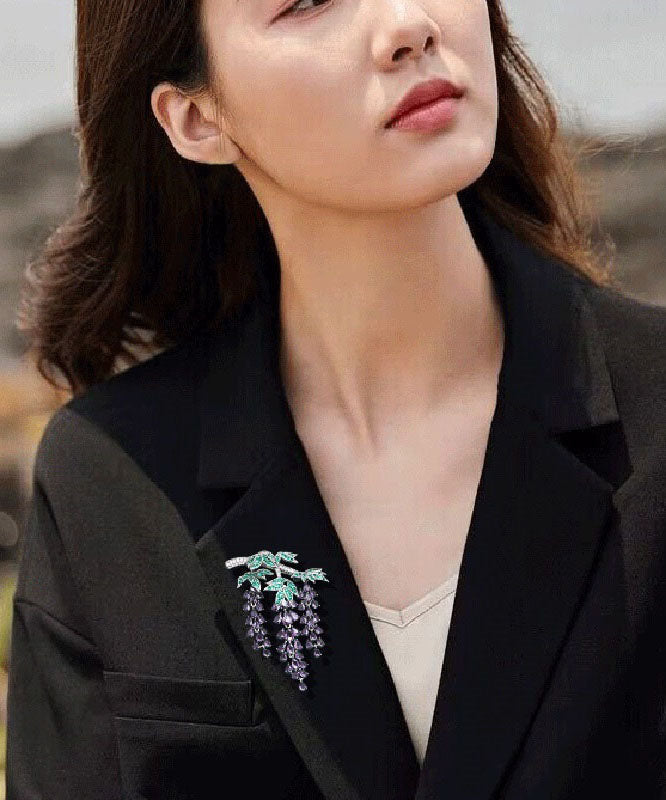 Elegant Purple Copper Zircon Wisteria Tassel Brooches
